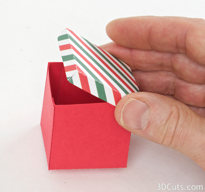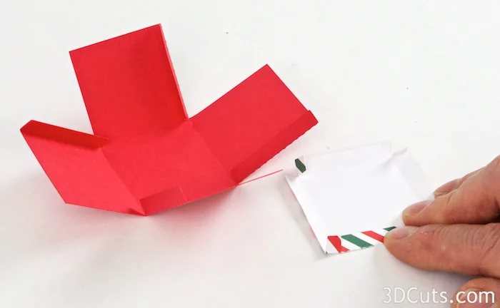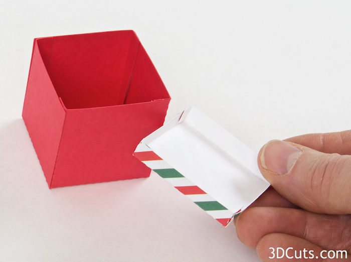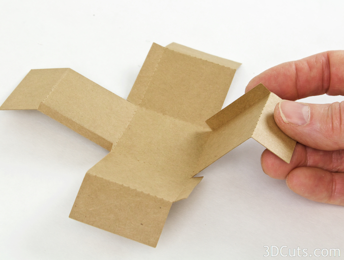 - Bend up the 4 sides of the box, folding the corner tabs to the inside and adhering in place.