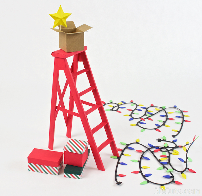 This tutorial is for the assembly of the Decorating for Christmas Ladder files designed by Marji Roy of 3DCuts.com. It includes the building of the ladders, tiny presents, lights and star. It is perfect as a mantle or shelf decoration or as a centerpiece. The ladder is about 9" tall.