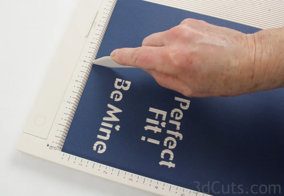 - Carefully place the background piece because it uses almost the entire piece of card stock. Use good quality card stock if you want the letters to cut cleanly.