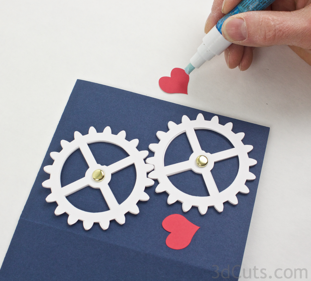 - Make all the 3D gears for your design - 3 for the birthday card and 2 for the valentine.