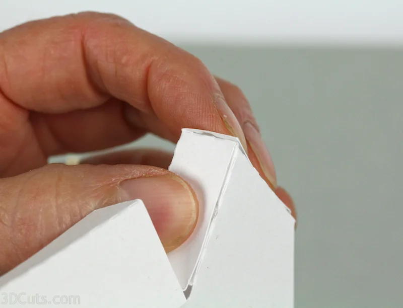 - Add Scor-Tape or glue dots to the tab on the roof and glue that behind the front wall.