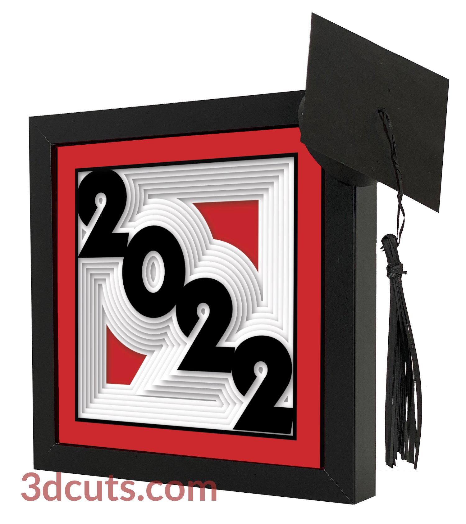 This shadow box is designed for your 2022 graduate. Use the school colors for your graduate.The file for the 3d graduation cap is included in the download.