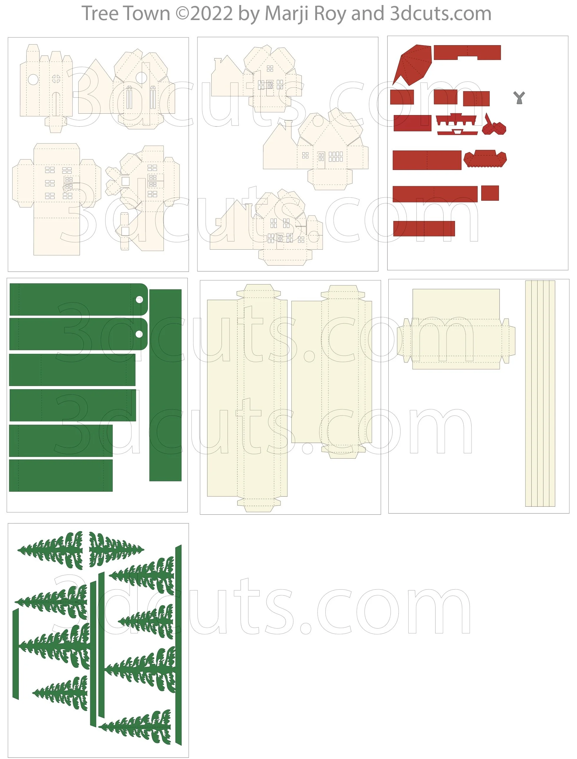 Cutting Files here - Available at https://3dcuts.com/christmas-projects/tree-town