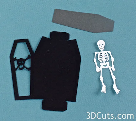 - Paper colors are your preference. I made the casket out of black with a dark gray inside cover. I made the skeleton out of a light gray.