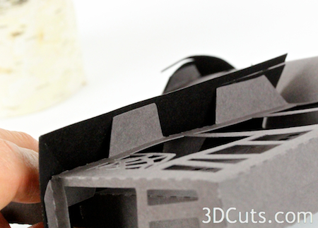 - Use glue Dots on the tabs that glue the sides to the roof and the roof park together.
