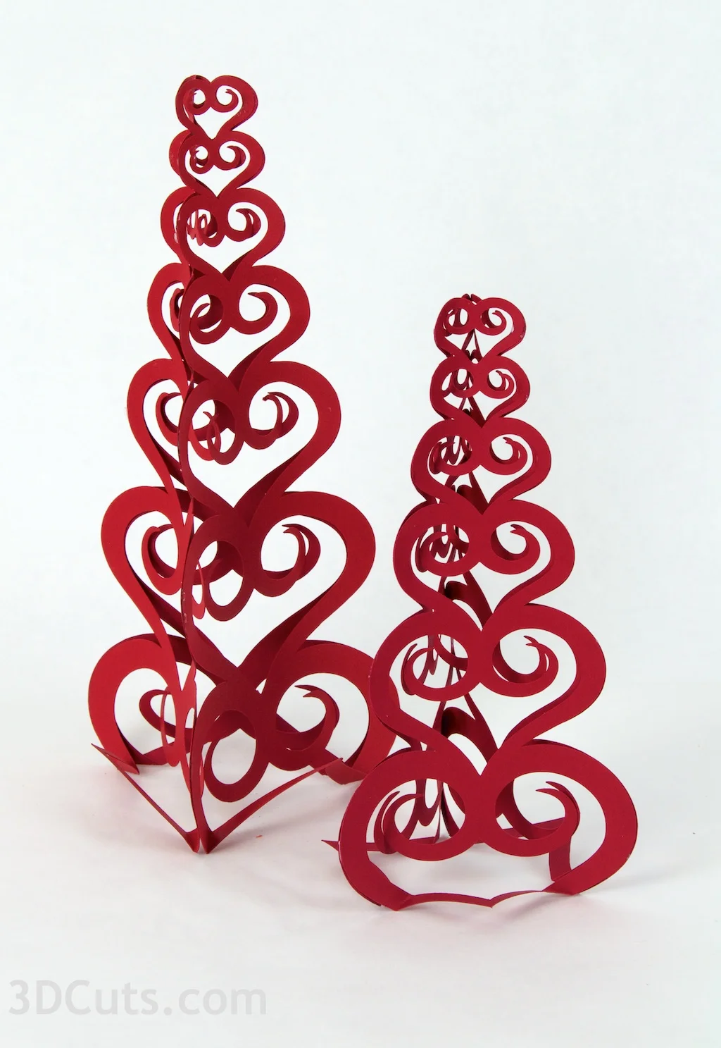 - The Spiral Tree and Stacked Heart Tree can not stand as is. They need to have the foot bent out to give them an edge to stand on.