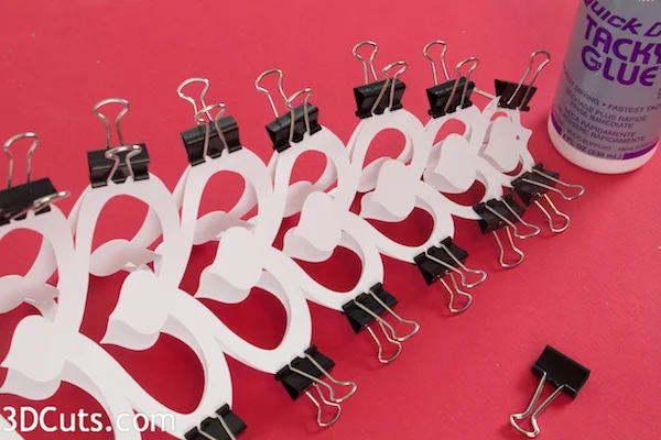 - I then move up one set of bumps and glue both sides in place again using binder clips to keep them there.